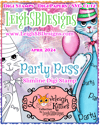 Party Puss is the 6th addition to my PURRtastic collectible Loveleigh Kitties Collection and is the cutest party themed slimline Kitty ready to celebrate any occasion with you from Birthdays to New Years! Party Puss has a balloon tied to his tail, a party hat perched on his head ready for you to embellish with a pompom, jewels, tassels or a number...you get the idea, and around his neck he wears a ribbon bow tie with a little heart in the center to match his cute heart shaped nose and his curvy body is decorated with the word "party" that increases in size down his body.Â